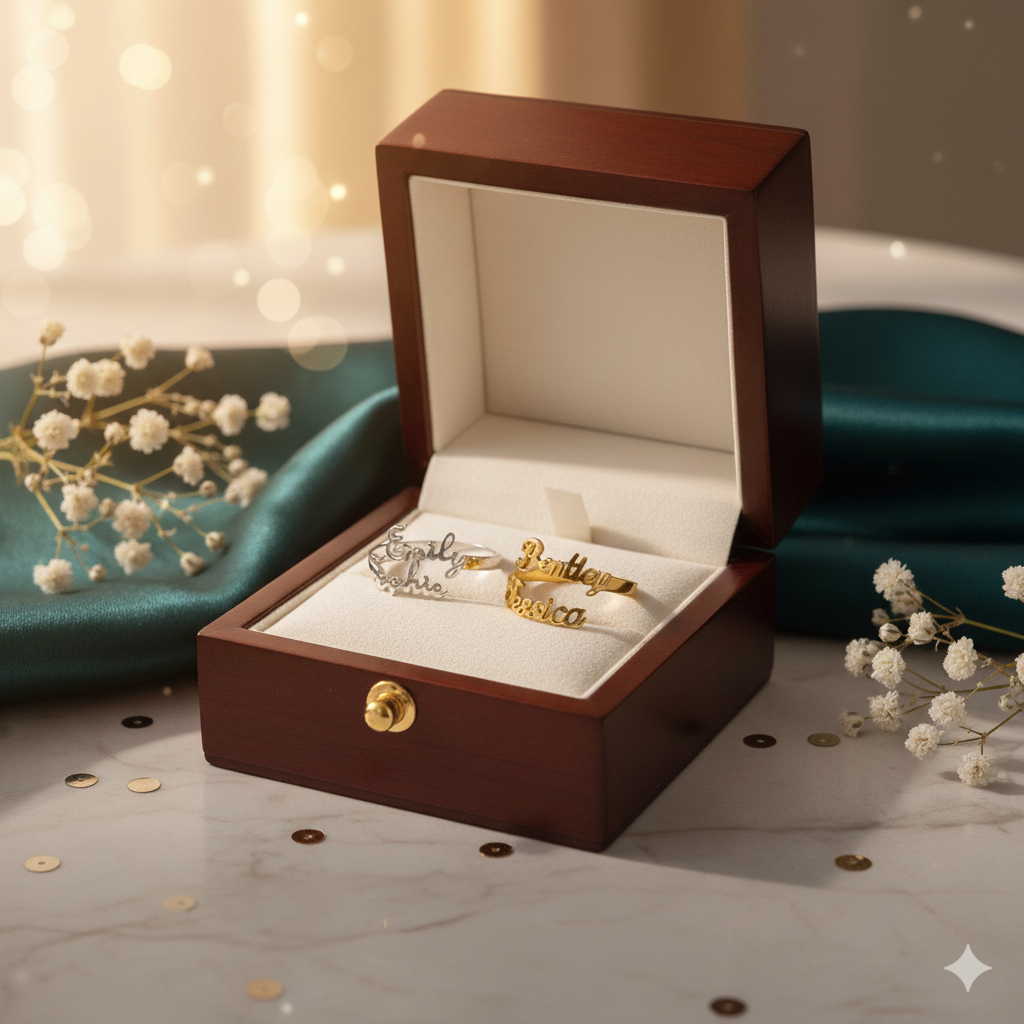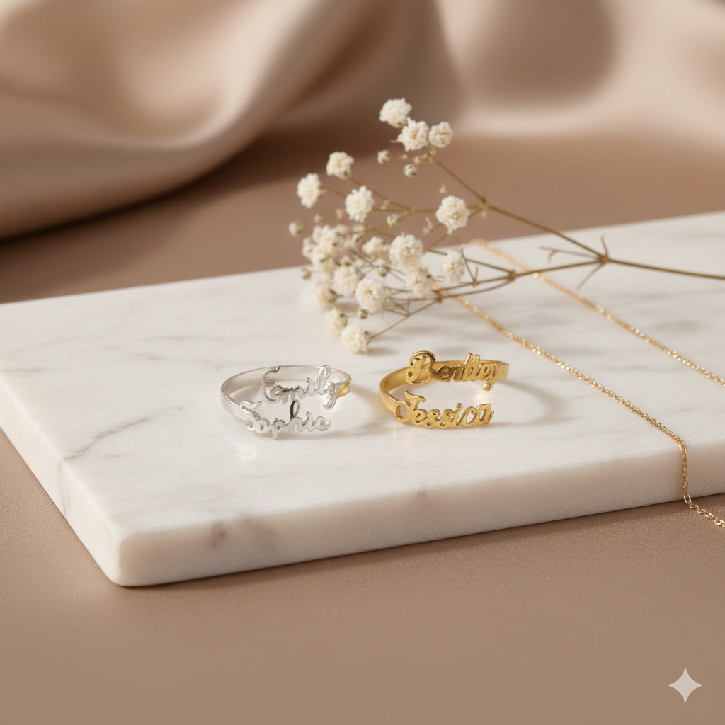 Tragen Sie einen Namen oder ein für Sie bedeutungsvolles Wort ein: Die personalisierte Gravur verwandelt jedes Schmuckstück in ein tief symbolisches und emotionales Objekt.